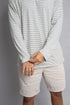 חולצת פסים ארוכה מבד סיפוניה איכותי ונעים בגזרה לוז שמחמיאה על הגוף עם לוגו רקום בעורף .