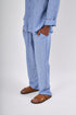 מכנס פשתן ארוך בגזרה לוס ומשוחררת עם גומי במותן .