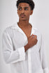 מכופתרת פשתן שרוול ארוך בגזרה לוס עם שרוולים ארוכים ולוגו רקום בעורף .