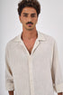 מכופתרת פשתן שרוול ארוך בגזרה לוס עם שרוולים ארוכים ולוגו רקום בעורף .